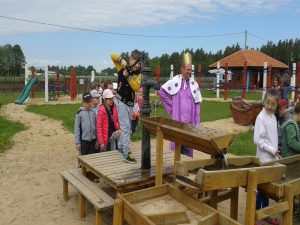 Baśniowymi przewodnikami są Panna Borówczanka i Jagodowy Król, którego być może kojarzycie z utworu Marii Konopnickiej „Na Jagody”. Patroni wioski opowiedzą Wam kolejne legendy Suwalszczyzny i przekażą swoją wiedzę na temat niezwykłej, lokalnej przyrody. Usłyszycie też wzruszającą historię o miejscowym kamieniu.